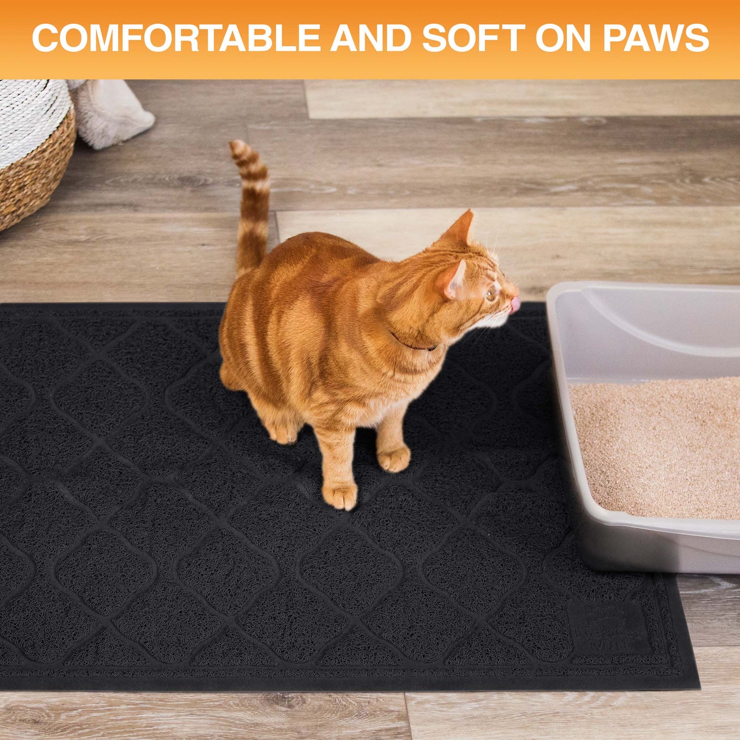 The Neater Mat Litter Mat is safe for pets and gentle on paws. It also has an anti-slip backing to keep the mat in place, protecting your floors from getting messy and your kitty from sliding around as they try to exit their box.